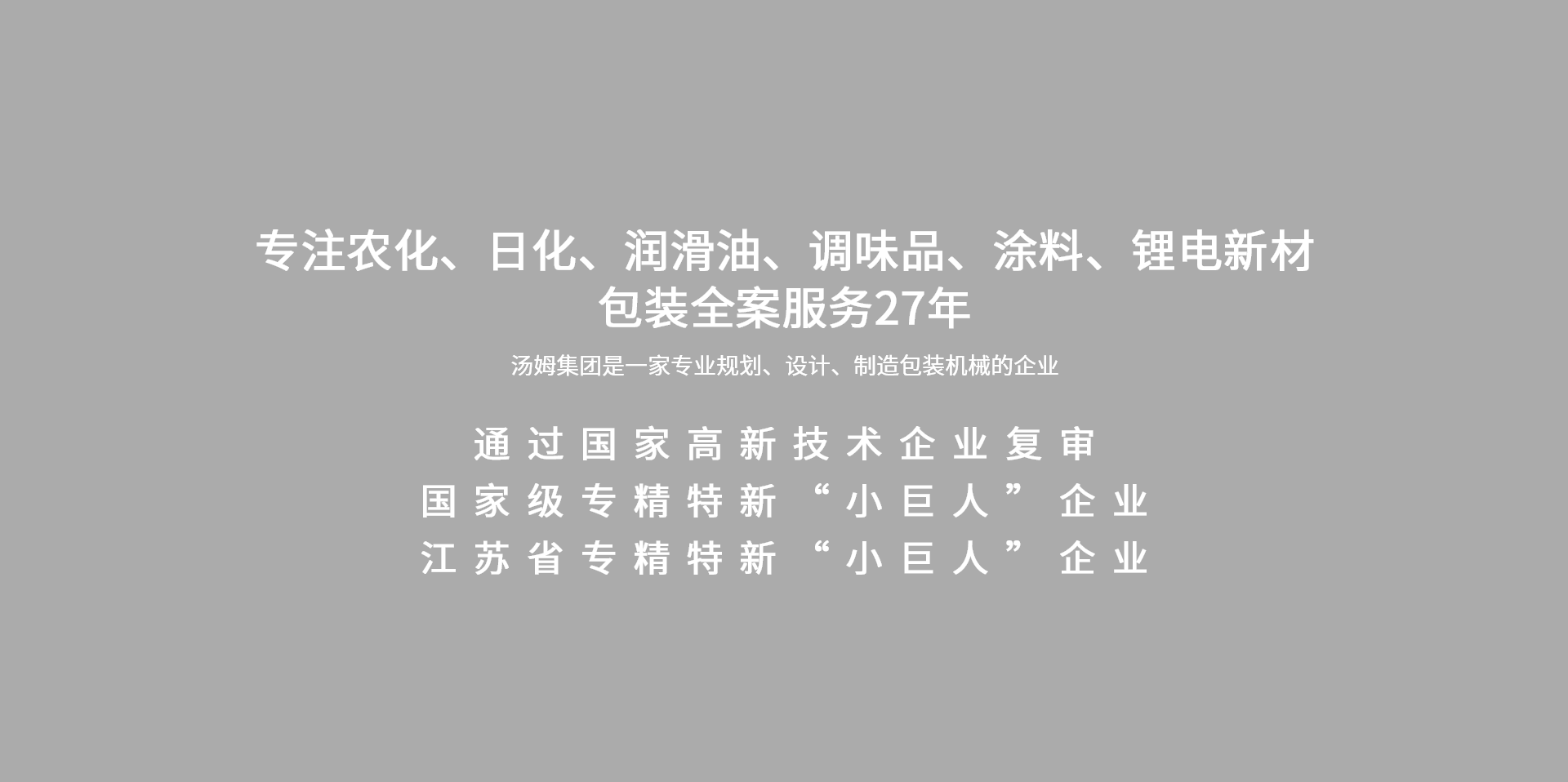 江蘇湯姆集團(tuán)在液態(tài)、粉體、固體、顆粒等包裝領(lǐng)域的專長保證了工藝設(shè)計(jì)與整線工程的完美結(jié)合。建立了農(nóng)化、石化、調(diào)味品、日化、涂料等不同包裝領(lǐng)域的工藝設(shè)計(jì)體系,根據(jù)不同的包裝形式及具體的工廠布局,均可提供專為您項(xiàng)目而量身定制的交鑰匙解決方案 。